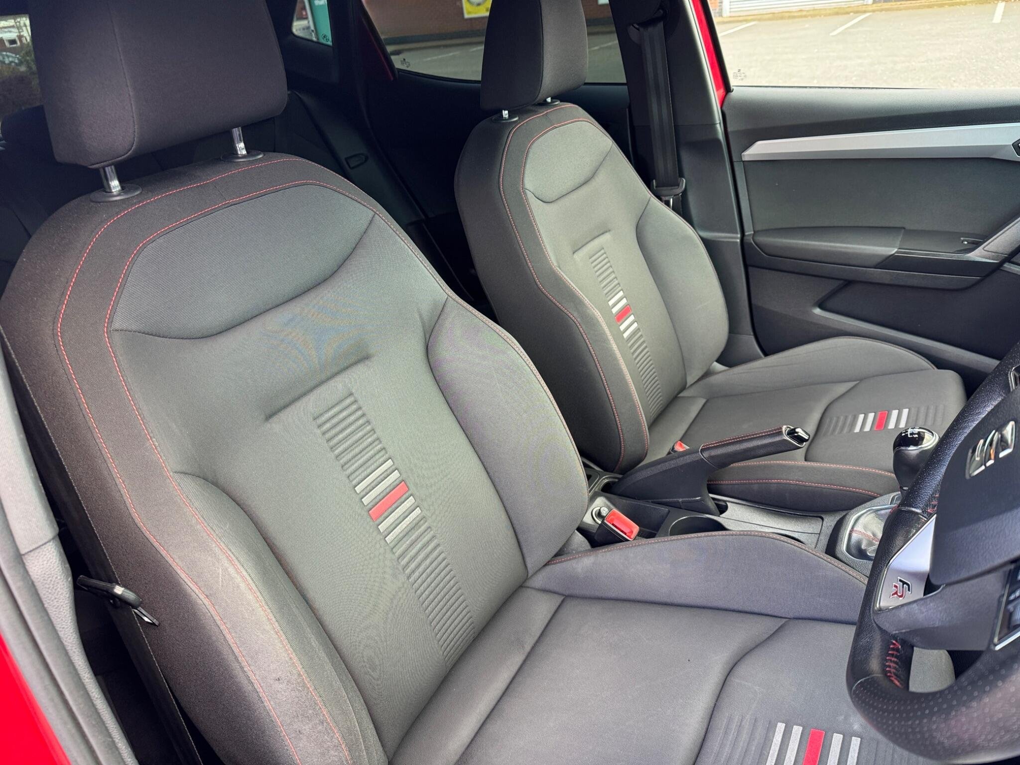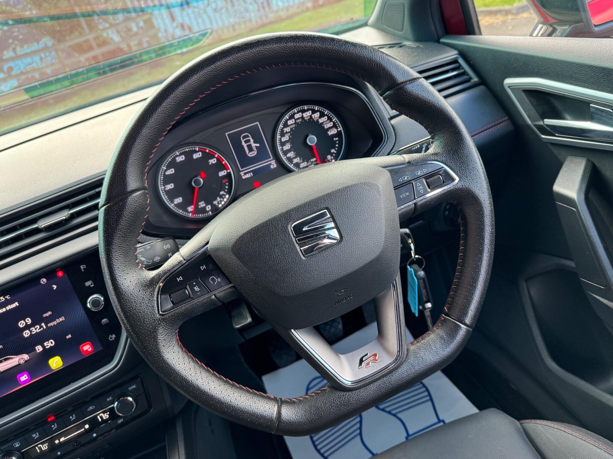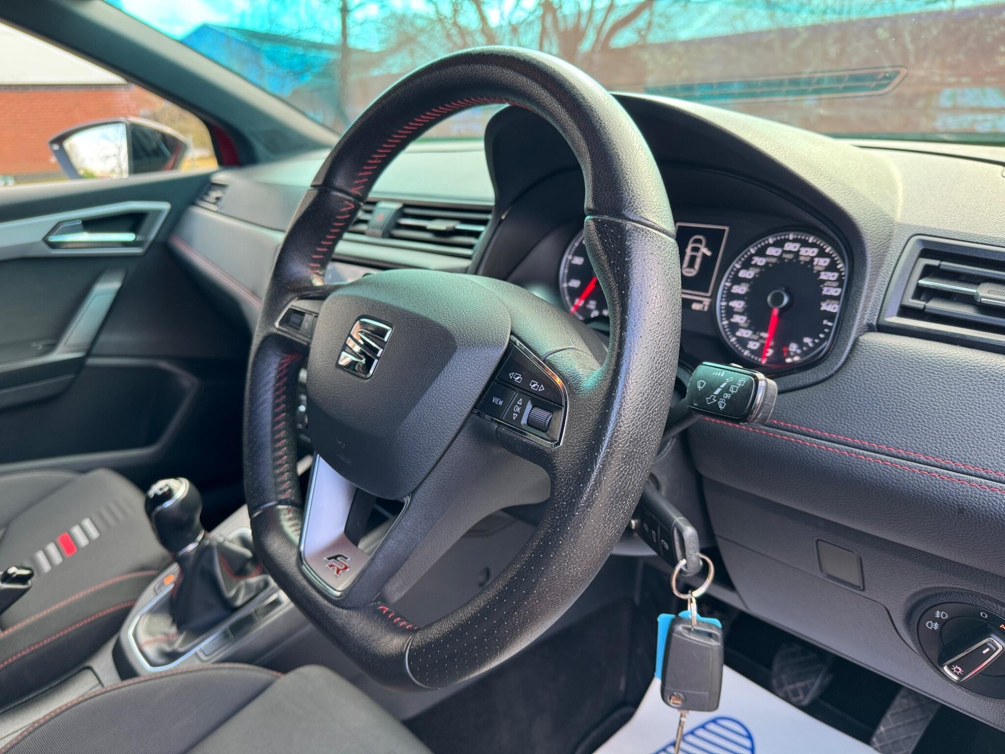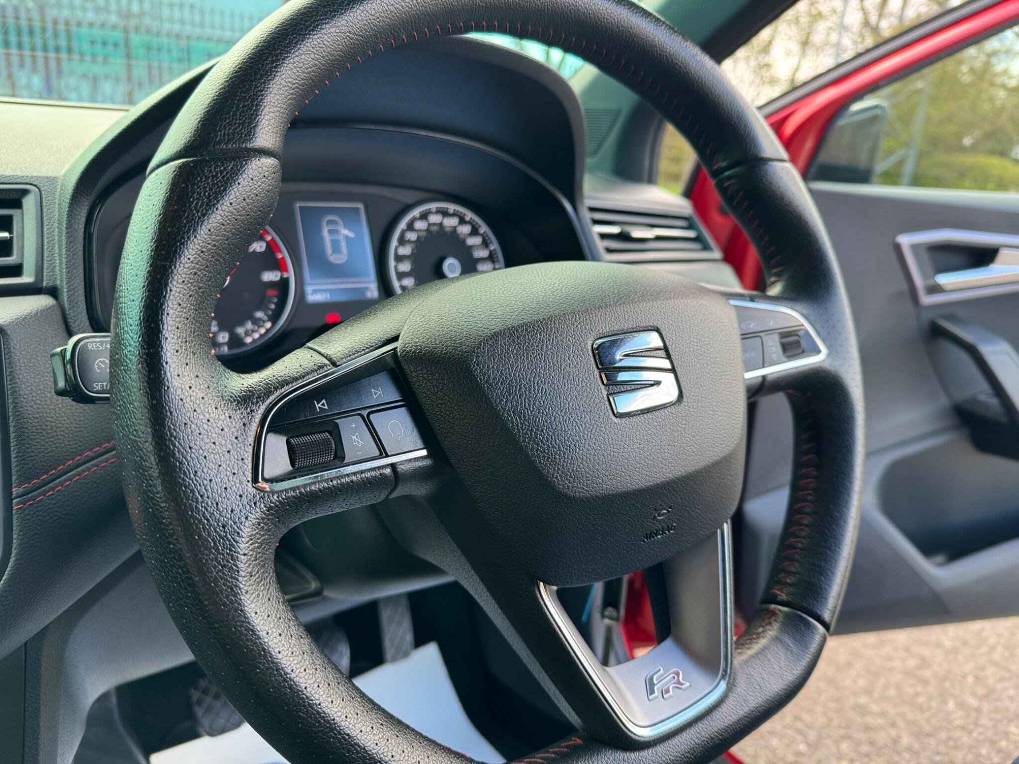 - Perforated Leather Flat-Bottomed Steering Wheel with Red Stitching and FR Logo with Leather Gear Knob