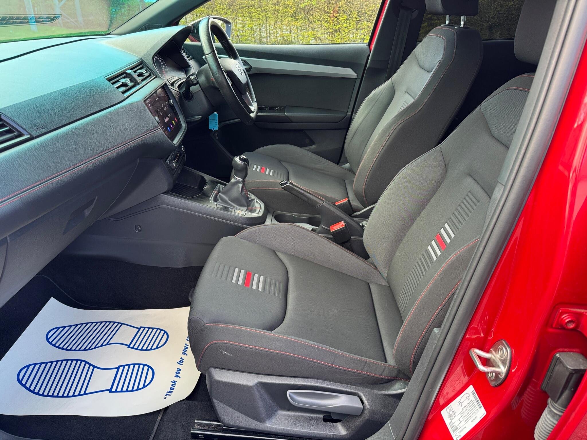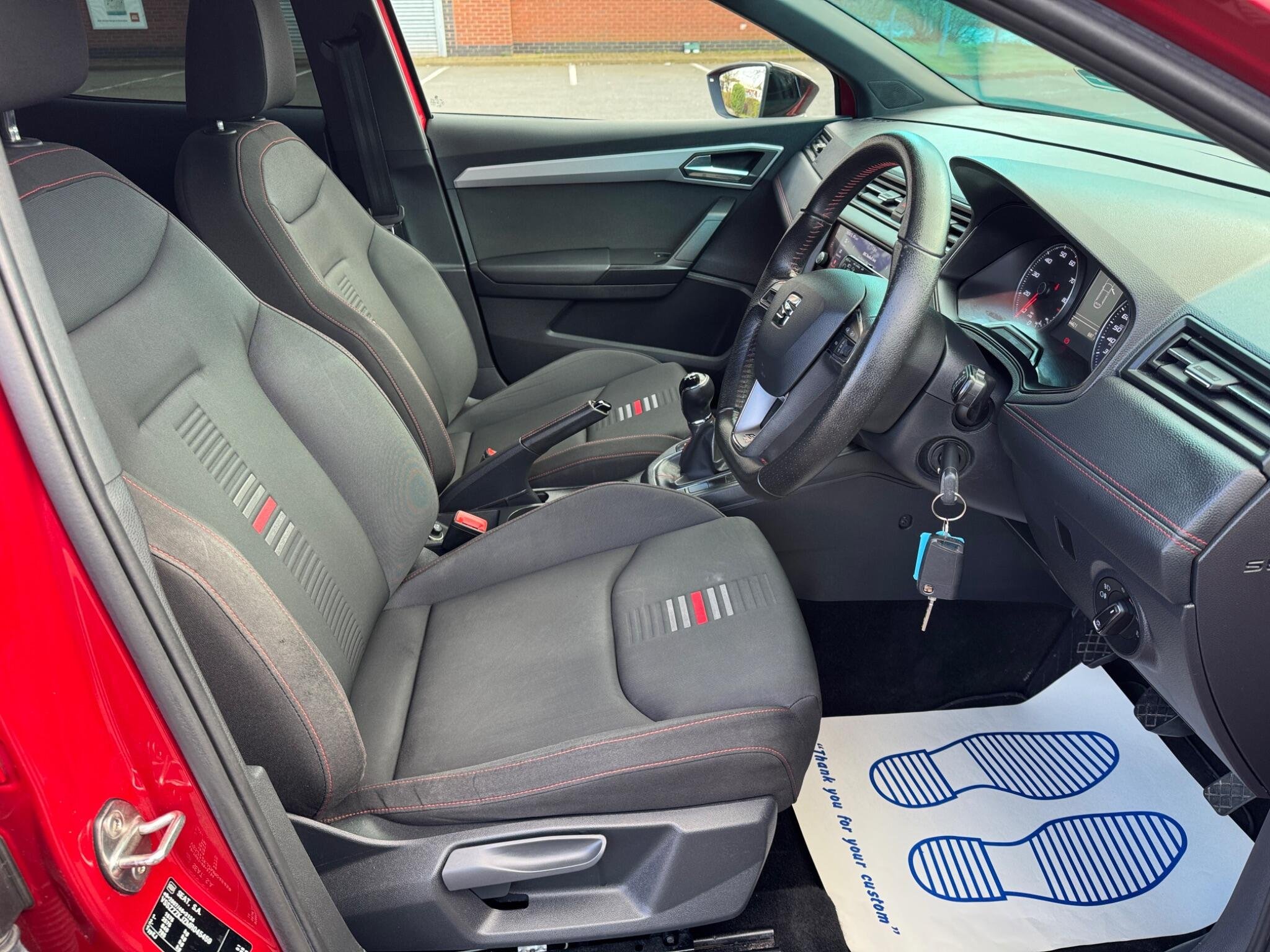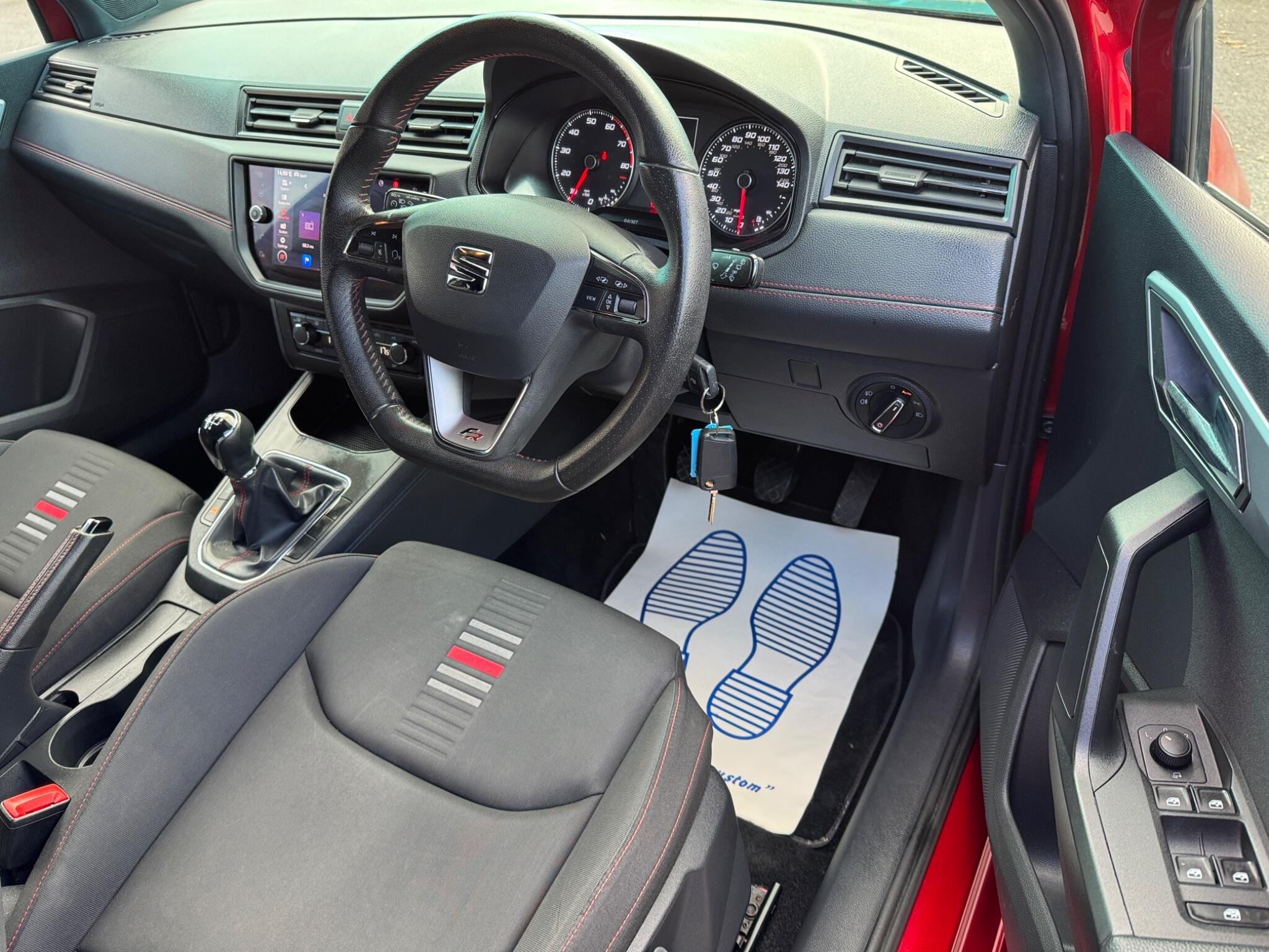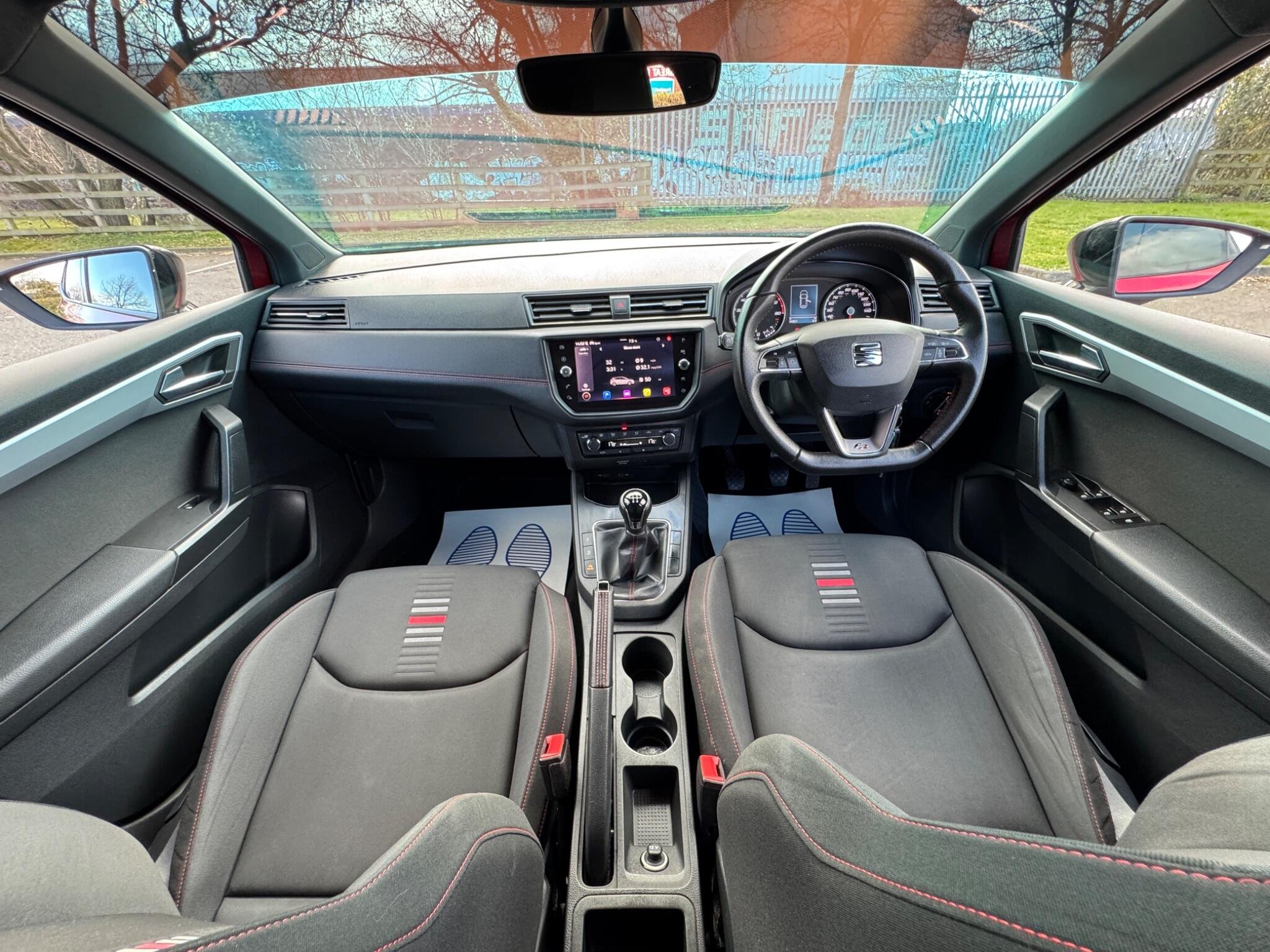 - Perforated Leather Flat-Bottomed Steering Wheel with Red Stitching and FR Logo with Leather Gear Knob