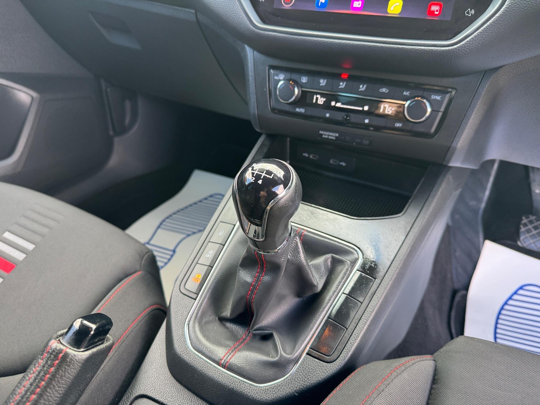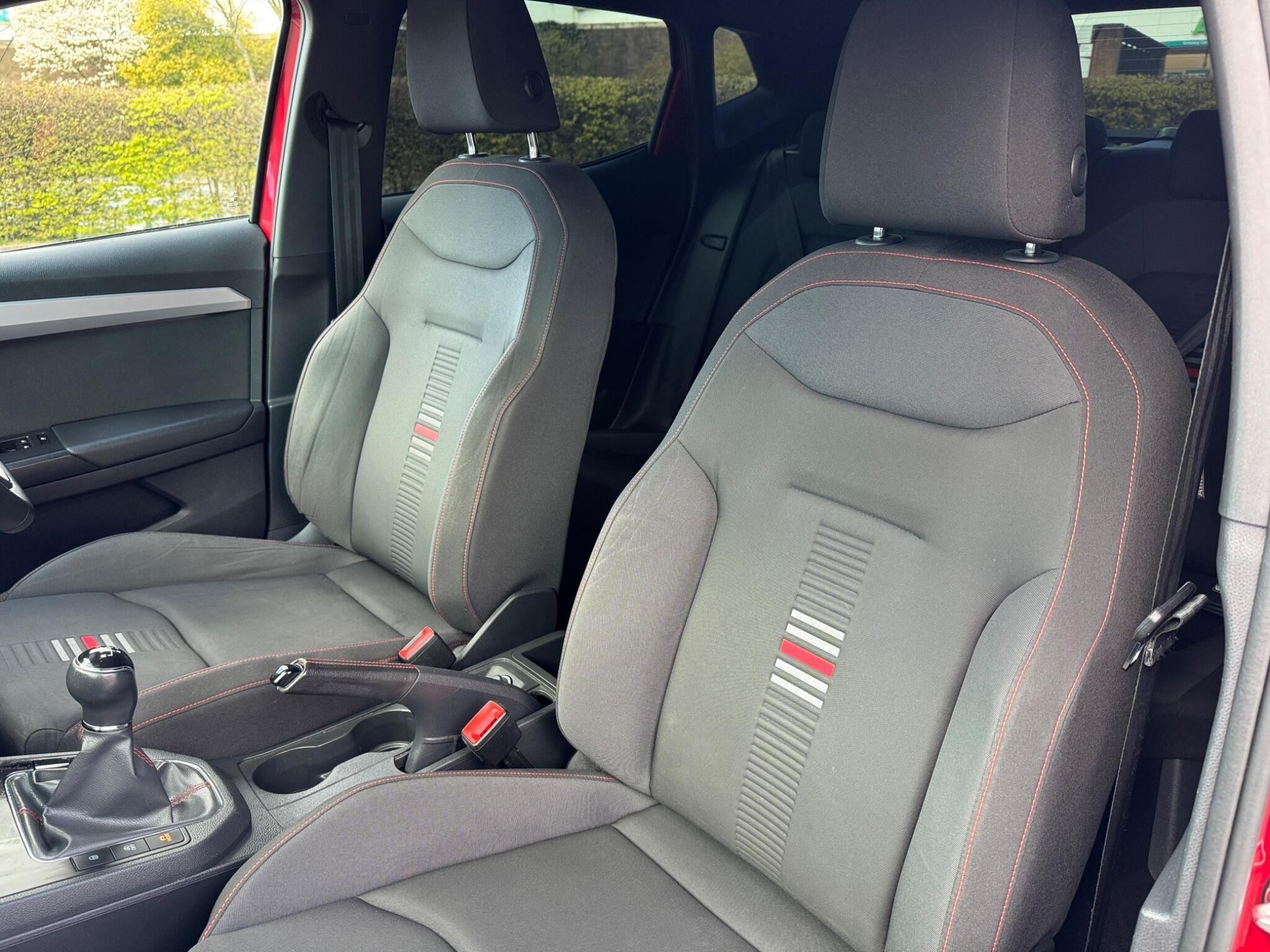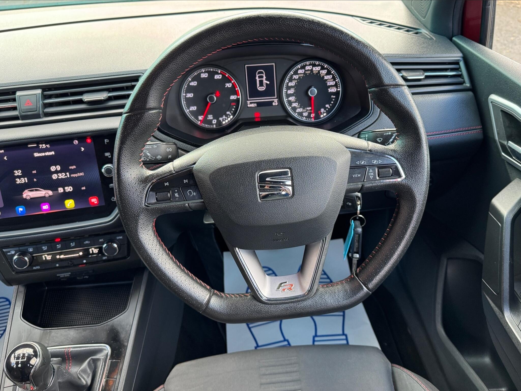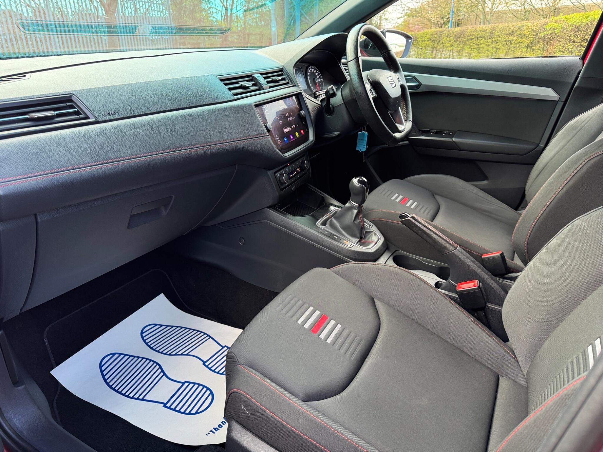 - Perforated Leather Flat-Bottomed Steering Wheel with Red Stitching and FR Logo with Leather Gear Knob