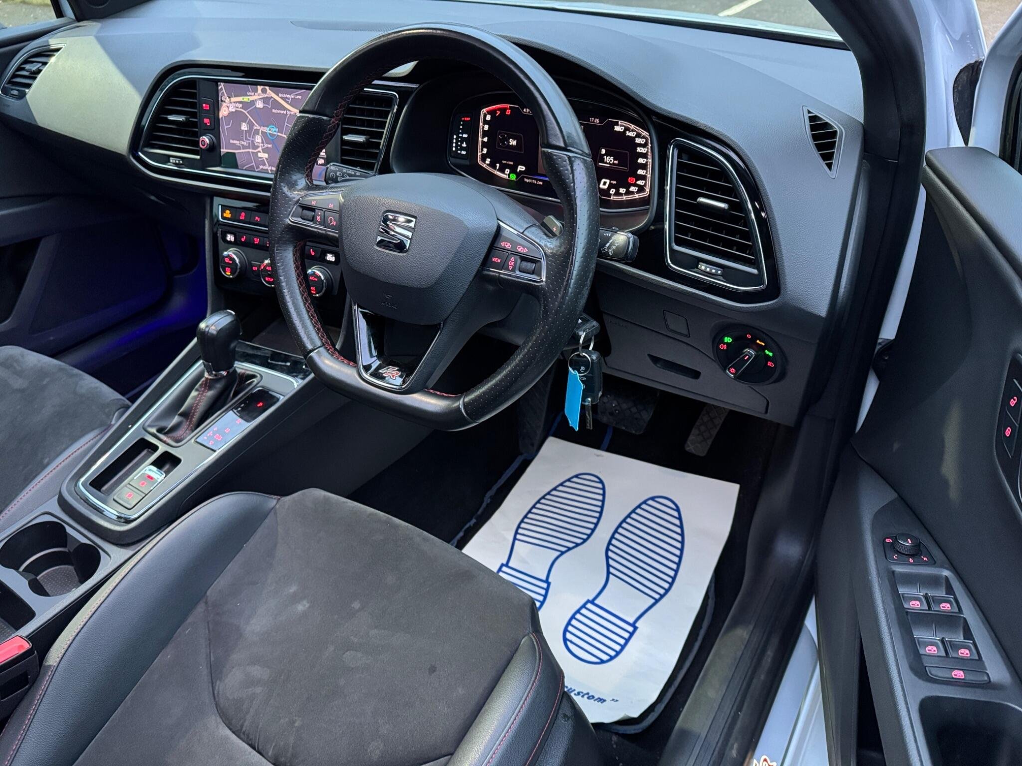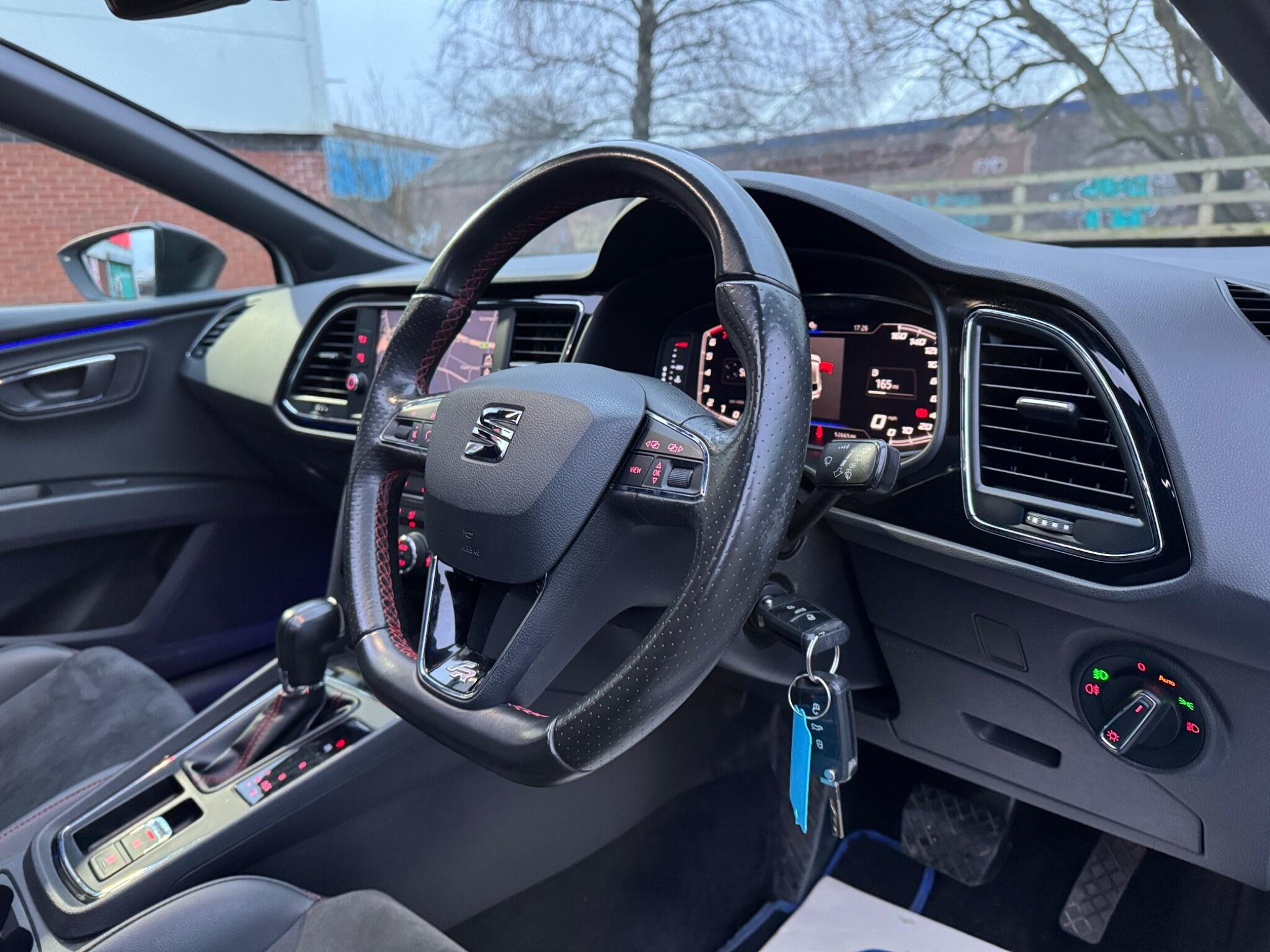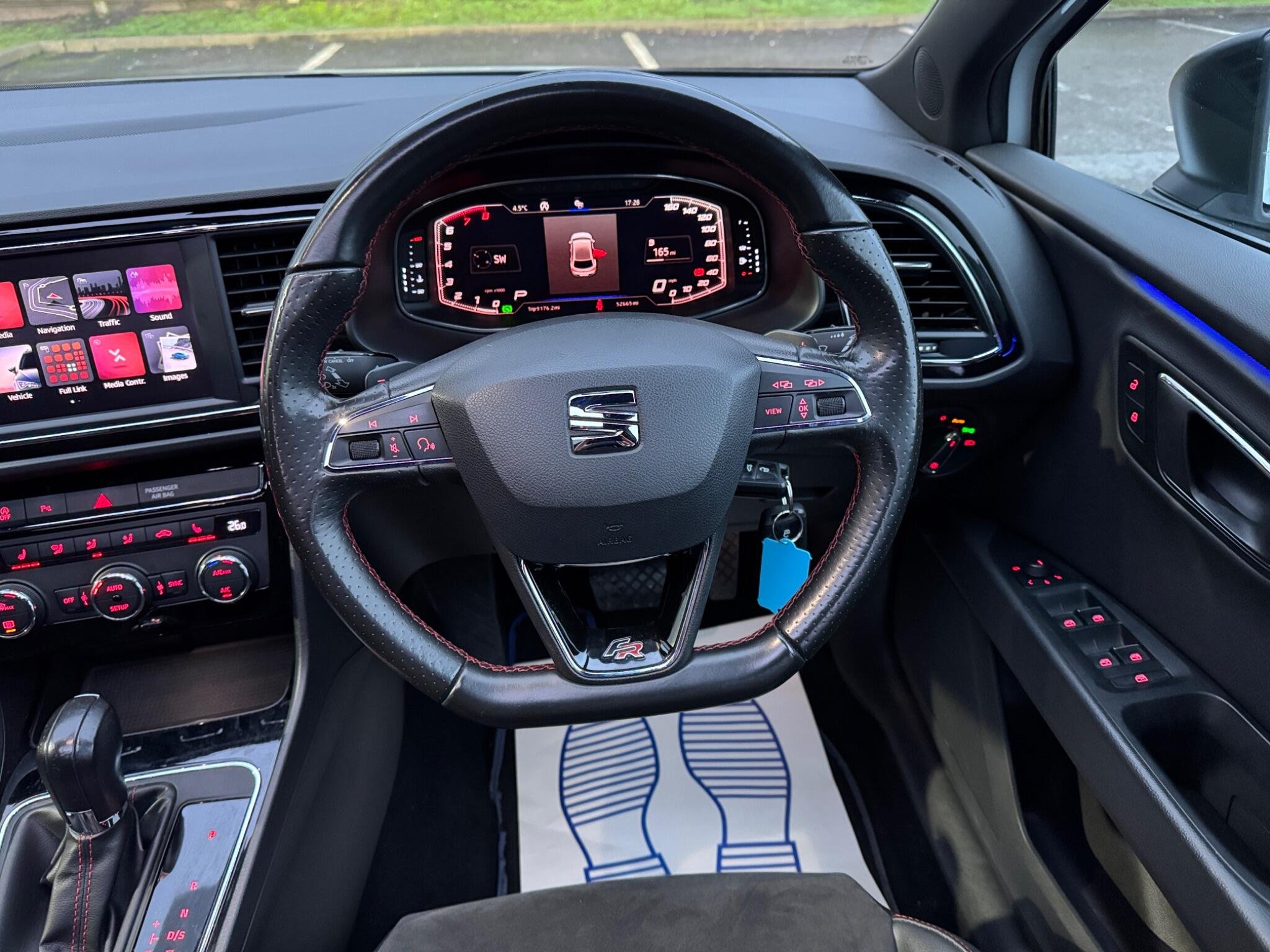 - Steering Wheel - Flat-Bottomed Perforated Leather with Red Stitching and FR Logo